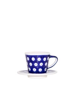 Dekoration D-42 „Punkte“Dies ist eine der klassischsten und gleichzeitig sehr beliebten Dekorationen von Bolesławiec-Gefäße. Zur Auswahl stehen kobaltfarbene Kreise mit einem weißen Zentrum mit einem kobaltfarbenen Punkt, die in eine kobaltfarbene Wolke übergehen. Weiße Kreise sind eng und zufällig angeordnet. Scheinbar geordnet und doch ein wenig zufällig. Eine zur Dekoration verwendete Farbe, macht sie minimalistisch und elegant.
