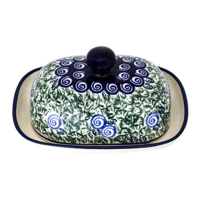 • Wie alle Gefäße der Zakłady Ceramiczne "BOLESŁAWIEC" werden auch die Butterfässer manuell mit Stempeln und Pinseln dekoriert, so dass jedes Stück ein Unikat ist und es daher zu minimalen Unterschieden in der Dekoration zwischen einzelnen Stücken innerhalb desselben Designs kommen kann
