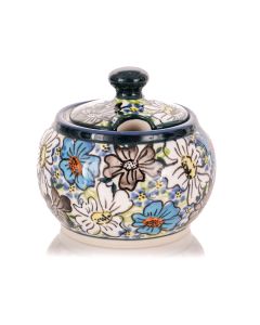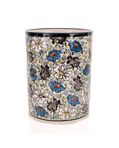EiertellerEierbecher Ufo – 730 Manche mögen die hohen Gläser für weichgekochte Eier, andere freuen sich über die flachen Eierbecher, die den Vorteil haben, dass sich Schalenstücke auf dem Teller rund um die Eierhöhle absetzen lassen. Jeder Eierbecher wird von Hand mit Pinsel und Stempeln verziert, glasiert und bei hoher Temperatur gebrannt, sodass er widerstandsfähig ist und die Dekoration ihre Farbe nicht verliert. Sie können die Eierbecher problemlos mit anderem Geschirr aus Bunzlauer Keramik kombinieren, das Sie bereits besitzen. Sie könnten aber auch versucht sein, für jedes Haushaltsmitglied, das das flüssige Eigelb mag, eine andere Dekoration zu wählen. Die Eierbecher sind spülmaschinenfest. Sie können auch eine schöne Dekoration auf dem Ostertisch sein. Und wenn sie nicht gebraucht werden, nehmen sie wenig Platz ein, da sie im Schrank gestapelt werden können. Dekoration ART-373Blaue, graue und weiße Blumen, die keramische Gefäße dicht füllen, werden jeden, selbst den anspruchsvollsten Keramikliebhaber beeindrucken. Die Dekoration ist reichhaltig und sehr arbeitsintensiv, ihren Preis wert. Trotz des zurückhaltenden Farbschemas kann man nicht gleichgültig daran vorbeigehen. Ihr werdet selbst feststellen, dass Geschirr mit dem Dekor von Designerin Iwona Piela nahtlos in die Innenräume eurer Wohnungen und Häuser passt.