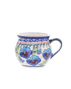 Dekoration ART-277 „Stiefmütterchen“Dies ist eine der einzigartigen Dekorationen, die sich durch eine größere Vielfalt an Mustern und Farben als bei traditionellen Dekorationen auszeichnen. In diesem Fall handelt es sich um eine der schönsten polnischen Blumen, nämlich Stiefmütterchen. Gepflegt in den Farben von dunkelblau mit schwarzen Zentren kommen sie elegant in Erscheinung. Einen Kontrast zu dem wahrhaft malerischen Blumenmotiv bilden Schnörkel, die aus abstrakten Mustern bestehen. Ungewöhnliche Dekoration für die Kenner der Bolesławiec-Keramik.