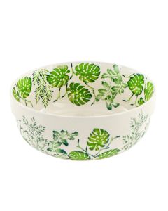 Dekoration D-1308 „Monstera“Das Motiv der Monstera-Blätter ist seit mehreren Saisons eines der beliebtesten dekorativen Motive in Innenräumen. Das Auftauchen der Monstera auf dem Bolesławiec-Geschirr ist ein Zeichen dafür, dass man mit der Zeit gehen und erfolgreich Tradition mit Moderne verbinden kann. Die Dekoration besteht aus Monstera-Blättern in saftigem Grün und Blättern anderer Pflanzen in verschiedenen Schattierungen dieser Farbe. Und das alles auf einem cremefarbenen Hintergrund. Es ist unprätentiös und modern.