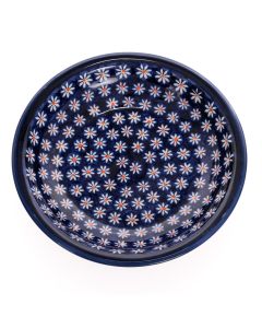 • Wie alle keramischen Produkte von Zakłady Ceramiczne "BOLESŁAWIEC" werden die Schalen von Hand mit Stempeln und Pinseln dekoriert, wodurch jeder einzigartig ist. Daher können minimale Unterschiede in der Dekoration zwischen einzelnen Stücken innerhalb des gleichen Designs auftretenDekoration D-1311ADies ist eine der klassischen Dekorationen von Bolesławiec-Geschirr. Vor unseren Augen breitet sich ein reizvoller Teppich aus winzigen Blüten mit kobaltfarbenen Blütenblättern und orange Zentren aus. Die Blumen werden auf dem cremefarbenen Hintergrund sehr präzise und sorgfältig eine nach der anderen platziert, so dass sich ihre Blütenblätter leicht berühren. Dies ergibt einen erstaunlichen Effekt. Dekoration für Genießer. Alle Dekorationen der in Zakłady Ceramiczne "BOLESŁAWIEC" hergestellten Gefäße werden von Künstlern nach traditionellen Methoden - mit Stempeln und Pinseln - von Hand gefertigt. Nach dem Dekorieren und Glasieren werden die Gefäße zweites Mal bei hoher Temperatur ausgebrannt, wodurch sowohl das Gefäß als auch die Dekoration an Beständigkeit gegen Beschädigungen und Farbveränderungen gewinnen. Jeder handdekorierte Artikel ist ein Unikat, da leichte Unterschiede in der Dekoration unvermeidlich sind.