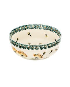 Schu¨ssel Veilchen kleinGroße Schüsseln, mittlere Schüsseln, kleine Schüsseln – es handelt sich um das vielseitigste Geschirr in der Küche und auf unseren Tischen. Diese Keramik-Schüssel von Ceramiczne Zakłady BOLESŁAWIEC eignet sich dank ihres Fassungsvermögens von 0,4 Litern sowohl zum Essen als auch zum Servieren von Speisen. Die Schüssel kann für Haferbrei oder Müsli zum Frühstück, Suppe und, da sie nicht zu tief ist, auch für Nudeln verwendet werden. Sie eignet sich auch zum Servieren von Beilagen wie Saucen, Salaten und Rohkost. Jede Schüssel aus Bunzlauer Keramik wird mit Stempeln und einem Pinsel handdekoriert, glasiert und bei hoher Temperatur gebrannt, wodurch sie widerstandsfähig gegen Beschädigungen wird und die Farbe der Dekoration unverändert bleibt. Selbst wenn sie in der Spülmaschine gewaschen oder zur Aufbewahrung von Lebensmitteln im Kühlschrank verwendet wird. Das Dekor der Schüsseln lässt sich leicht mit anderem Geschirr aus Bunzlauer Keramik kombinieren. Dekoration DU-201Es ist eine der einzigartigen Dekorationen, die sich durch eine größere Vielfalt an Mustern und Farben als die traditionellen auszeichnen. Die anspruchsvollen Liebhaber der Bolesławiec-Keramik werden hier Blumen bemerken, aber sie können als einige Arten aus unseren Gärten identifiziert werden oder sind sie wie Pflanzen aus einem Traum? Sie sind weder Löwenzahn noch Mimose. An was erinnern sie Sie ?