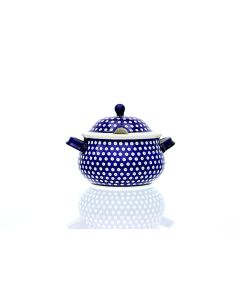 TeebeutelhalterDekoration D-42 „Punkte“Dies ist eine der klassischsten und gleichzeitig sehr beliebten Dekorationen von Bolesławiec-Gefäße. Zur Auswahl stehen kobaltfarbene Kreise mit einem weißen Zentrum mit einem kobaltfarbenen Punkt, die in eine kobaltfarbene Wolke übergehen. Weiße Kreise sind eng und zufällig angeordnet. Scheinbar geordnet und doch ein wenig zufällig. Eine zur Dekoration verwendete Farbe, macht sie minimalistisch und elegant.