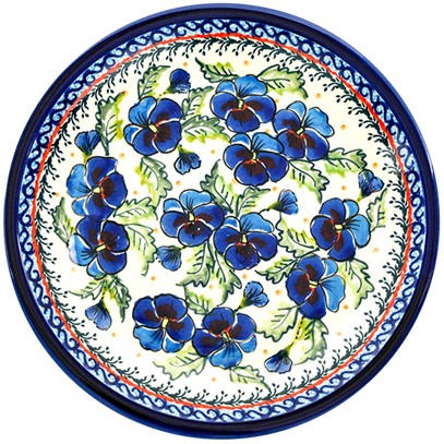 Continuing the exploration of stunning hand-painted traditional designs on Polish pottery, let's now delve into the enchanting depiction of pansies.
