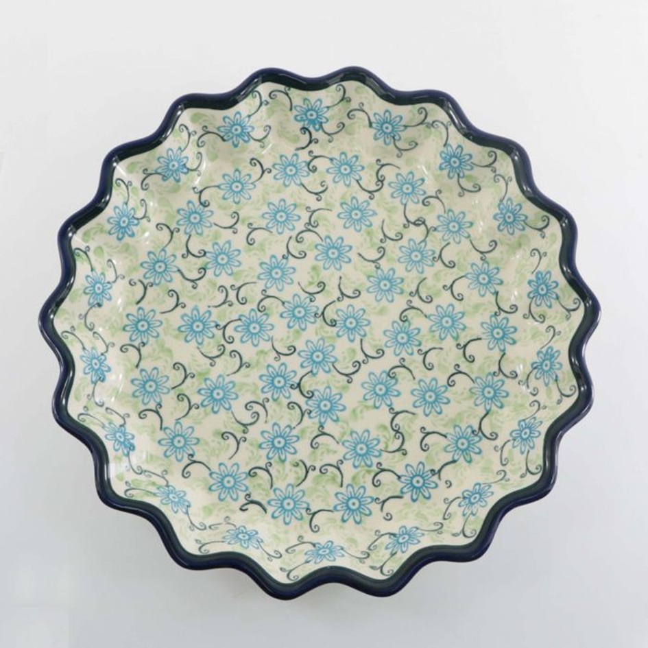 - Unique Design: The platter is adorned with an elegant dance of cobalt blue blossoms and verdant leaves. It's a classic Bolesławiec design, bringing the wonders of Polish tradition into your modern home.
