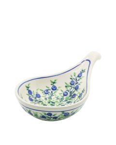 BowlD-1208 "berries” decorationThe berry motif on Boleslawiec ceramics is one of the newer decorations, which hit the hearts of our customers. Its design refers to classic colours - we have berries in cobalt colour and leaves and stems in green. On the pottery decorated in this way there is a lot of cream background, thanks to which they are optically light. Berries evoke positive associations with summer and the sun, but they will be good on the table in any season.