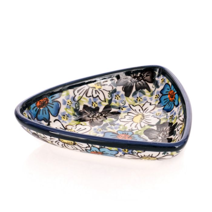 Bowl for appetizers (V0,1L)ART-373 decorationBlue, gray, and white flowers, densely adorning ceramic vessels, will make an impression on anyone, even the most discerning ceramic enthusiast. The decoration is rich and highly labor-intensive, worth its price. Despite its understated color palette, one cannot pass by it indifferently. You will see for yourselves that dishes adorned with the design by designer Iwona Piela will seamlessly blend into the interiors of your apartments and houses.