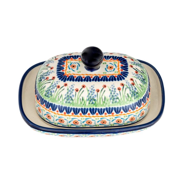 • As all pottery of Zakłady Ceramiczne "BOLESŁAWIEC", butter containers are also decorated by hand using stamps and brushes, thanks to which each one is unique and therefore minimal differences in decoration may occur between particular pieces within one decoration