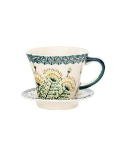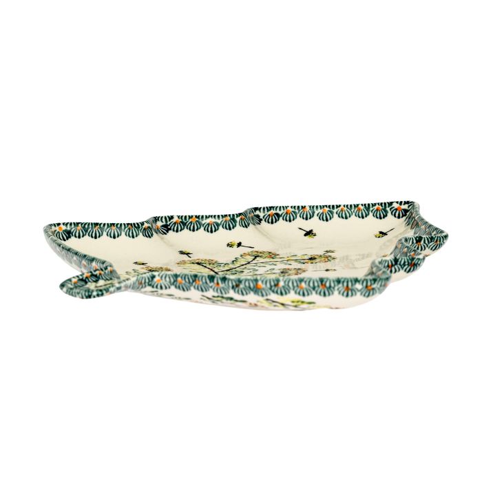 Decorative accent – the original shape makes the plate a beautiful table decoration on its own.DU-201 decorationIt is one of the unique decorations, which are characterized by a greater variety of patterns and colors than the traditional ones. The demanding lovers of Bolesławiec pottery will notice flowers here, but can they be identified as some species from our gardens or are they like plants from a dream? They are neither dandelions nor mimosa. What do you associate them with?
