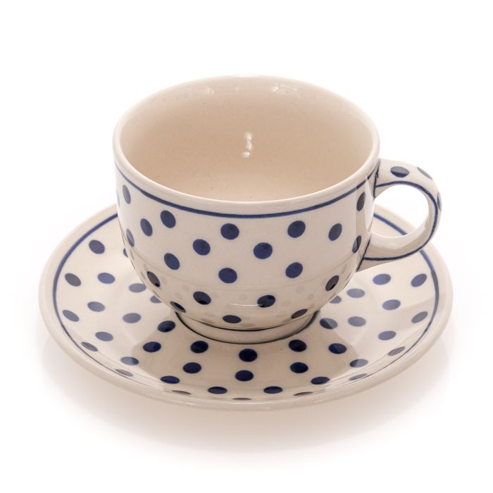 D-37 decorationCobalt and a cream background is always a perfect colour combination, found on the pottery for decades. This decoration is simple, classic, although it can't be said to unequivocally refer to the tradition of Bolesławiec. Peas? Circles? Spots? Call it what you like, but be sure to check how tea tastes in a cup with such a motif.