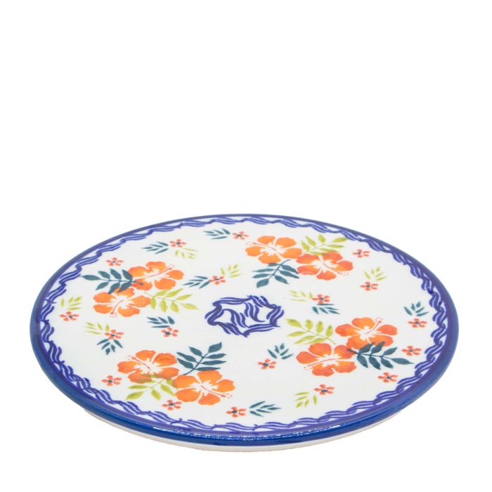 • Like all ceramic products from Zakłady Ceramiczne "BOLESŁAWIEC", the trays are hand-decorated using stamps and brushes, making each tray unique, so there may be minimal differences in decoration between individual pieces within the same decorationA-1306A decorationExotic, orange-red hibiscus flower and juicy, green leaves on Bolesławiec pottery? Why not? Judge for yourselves how this decorative motif proposed by designer Barbara Morżkowska-Michalak looks on ceramic dishes. In our opinion, quite good! P.S. There's also a cobalt blue trim - perhaps something for you traditionalists!