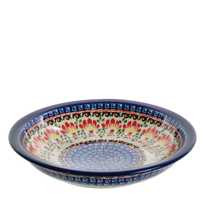 • Like all ceramic products from Zakłady Ceramiczne "BOLESŁAWIEC", the platters are hand-decorated using stamps and brushes, making each platter unique, so there may be minimal differences in decoration between individual pieces within the same decoration.DU-184 „Field Bells” decorationThe decoration we present draws inspiration from delicate field bells. The creator of this unique decoration loves warm colors, which are perfectly reflected in her design. The main theme of this decoration is the delicate field flower, which brings life and lightness to the interior. The warm colors used create a cozy atmosphere reminiscent of warm sun rays. An ideal choice for those who wish to infuse their surroundings with a touch of nature and pleasant warmth. Decoration creator – Danuta Szelejewska