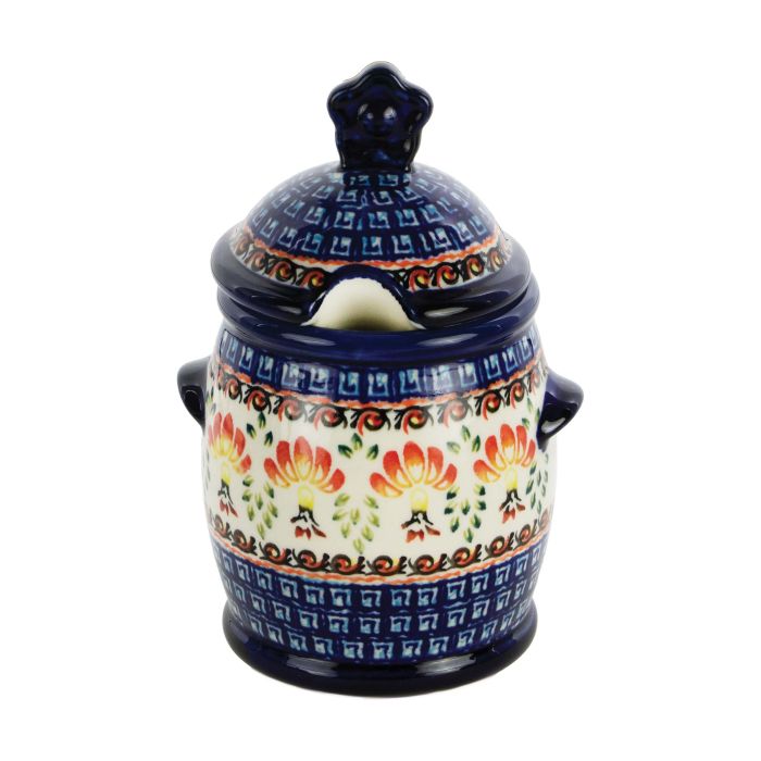 Honey pot (V0,6L)DU-184 „Field Bells” decorationThe decoration we present draws inspiration from delicate field bells. The creator of this unique decoration loves warm colors, which are perfectly reflected in her design. The main theme of this decoration is the delicate field flower, which brings life and lightness to the interior. The warm colors used create a cozy atmosphere reminiscent of warm sun rays. An ideal choice for those who wish to infuse their surroundings with a touch of nature and pleasant warmth. Decoration creator – Danuta Szelejewska