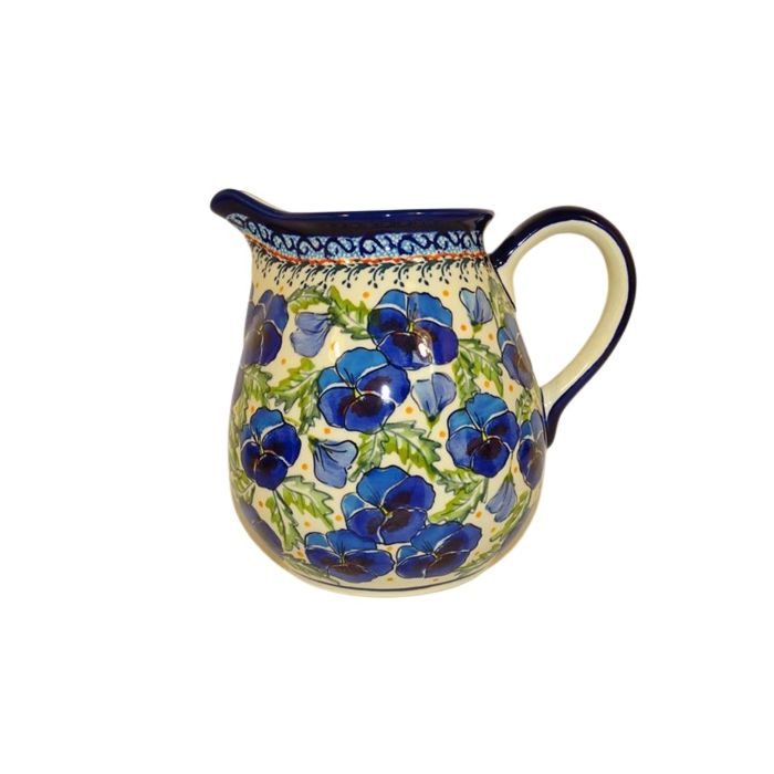 • Like the entire offer of Zakłady Ceramiczne "BOLESŁAWIEC", the jugs are also decorated by hand using stamps and brushes, making each of them unique, therefore there may be minimal differences in decoration between individual pieces within the same decoration.ART-277 "pansies" decorationThis is one of the unique decorations, which are characterized by a greater variety of patterns and colors than traditional decorations. In this case, we have one of the most beautiful Polish flowers, namely pansies. Maintained in the colors of dark blue with black centers are elegant. A contrast to the truly painterly floral motif are the scrawls composed of abstract patterns. Unusual decoration for the connoisseurs of Bolesławiec pottery.