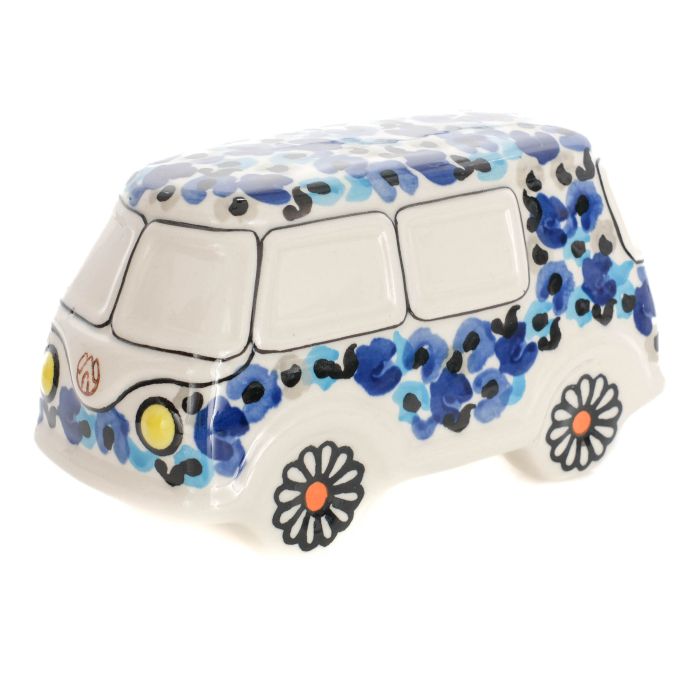 Moneybox - carA-1332A decorationDecoration for true connoisseurs of expressive and modern design. The motif of navy-gray "panther" with a strong black accent will surely catch the attention of every ceramic fan. A pattern for those who appreciate originality and creativity. See for yourself how fantastic it looks on the tableware sets from the "BOLESŁAWIEC" Ceramic Works, designed by Joanna Domaradzka.