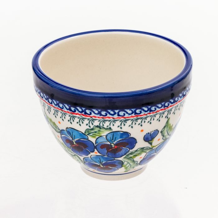 ART-277 "pansies" decorationThis is one of the unique decorations, which are characterized by a greater variety of patterns and colors than traditional decorations. In this case, we have one of the most beautiful Polish flowers, namely pansies. Maintained in the colors of dark blue with black centers are elegant. A contrast to the truly painterly floral motif are the scrawls composed of abstract patterns. Unusual decoration for the connoisseurs of Bolesławiec pottery.