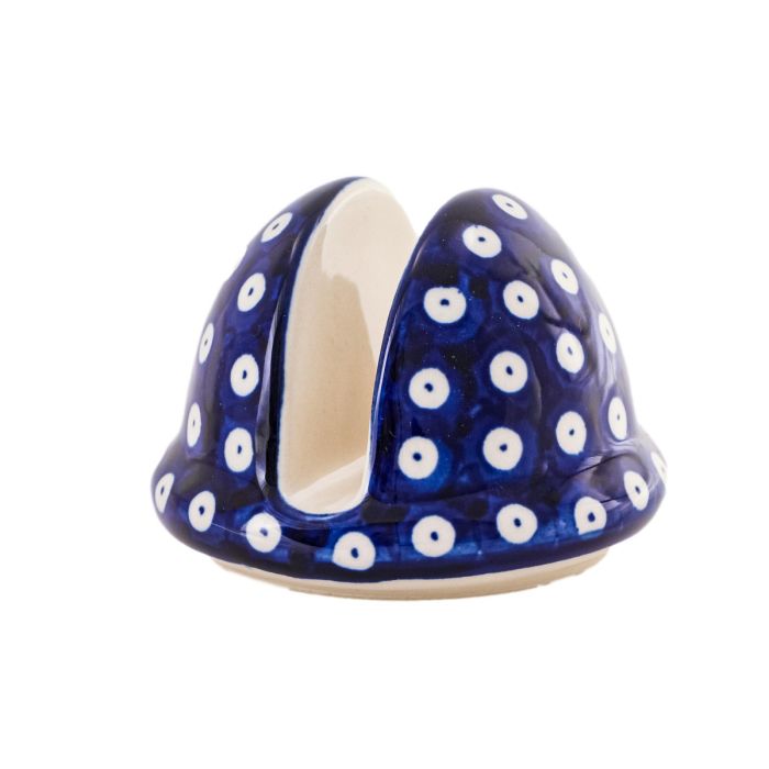 • Like all ceramic products from Zakłady Ceramiczne "BOLESŁAWIEC", napkin holders are also decorated by hand using stamps and brushes, so each one is unique, and therefore minimal differences in decoration may occur between individual pieces within the same pattern.D-42 "spots” decorationThis is one of the most classic and at the same time very popular decorations in Bolesławiec ceramics. You have cobalt circles with a white center and a cobalt dot transitioning into a cobalt cloud to choose from. The white circles are densely and randomly arranged. They appear organized, yet somewhat random. The colors used for decoration make it minimalist and elegant.