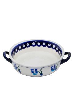 • Like all ceramic products from Zakłady Ceramiczne "BOLESŁAWIEC", the platters are hand-decorated using stamps and brushes, making each platter unique, so there may be minimal differences in decoration between individual pieces within the same decorationD-890 „Violet” decorationThe classic decoration featuring a violet motif stands out among others due to precise color shading on the flower petals. It's precisely this subtle play of shades that gives it a classic character. The creative color combination in the floral motif is not only aesthetic but also exceptionally refined, lending the decoration elegance and timeless allure. Decoration creator – Iwona Piela