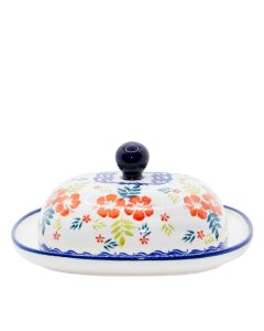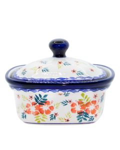 The design captures the tropical essence of hibiscus blooms, bringing an unexpected touch of exotic beauty to traditional Polish ceramic artistry.