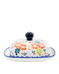 The choice of hibiscus as the central motif reflects a growing trend in contemporary ceramic design toward incorporating global botanical influences. Hibiscus flowers, known for their large, showy blooms and tropical associations, bring warmth and vibrancy to the traditionally more subdued palette of Bolesławiec pottery.