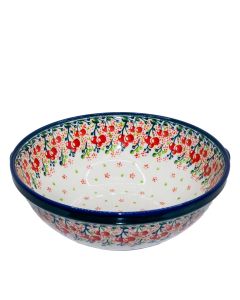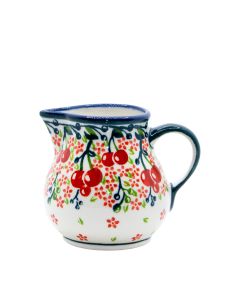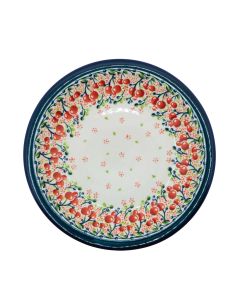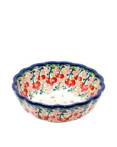 Dudnik-Chelalga's approach to decorative design emphasizes the natural beauty found in everyday fruits and flora. Her understanding of how decorative patterns interact with tableware forms ensures that the cherry motif enhances the food being served.