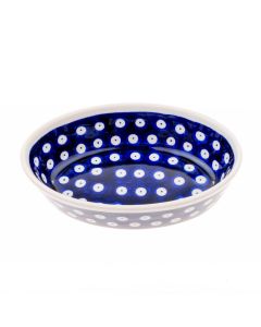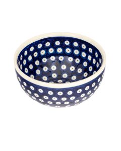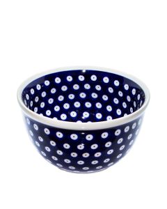 The Artistic Heritage Behind D-42 Decoration The D-42 "spots" decoration represents one of the most beloved and enduring patterns in Bolesławiec ceramics. This iconic Polish pottery design features distinctive cobalt circles with white centers and cobalt dots that transition into delicate cobalt clouds. The white circles appear in an organized yet random arrangement across each piece, creating a visual rhythm that feels both structured and organic.