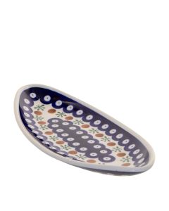 Salad Bowl BasketD-41 decorationThis is one of the classic decorations of Bolesławiec pottery, on which peacock eyes used to be the main decorative motif. We have here cobalt circles with white centres with cobalt dots in the middle, whose edges merge into a cobalt cloud. A stitch in green and brown - another traditional decoration colors - make the decoration lighter visually and more interesting.