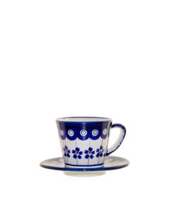 As with the entire range of products from Zakłady Ceramiczne "BOLESŁAWIEC", the coasters are also hand-decorated using stamps and brushes, making each one unique. Therefore, slight differences in decoration may occur between individual items within the same pattern.A-166A decorationThis decoration is the queen among decorations - admired and loved by customers. The idea for it is based on the classic Bolesławiec decorations, where we have three colours: cobalt, brown and green. There are also cobalt, tightly arranged circles with peacock eyes merging into a cobalt cloud. They are separated by a garland of flowers with slightly ragged petals that are a bit reminiscent of the bearded carnations from our grandmothers' and mothers' gardens.