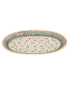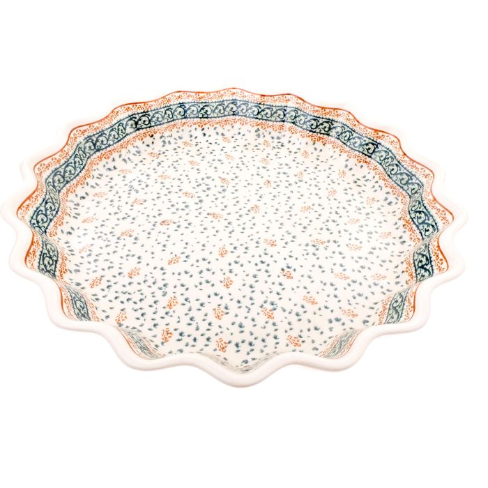 • Like the entire product range of Zakłady Ceramiczne "BOLESŁAWIEC," the plates are also hand-decorated using stamps and brushes, making each one unique, so there may be minimal differences in decoration between individual pieces within the same decorationD-1096 decorationThe pottery with this decoration are certainly not boring. Their colours refer to the traditional Bolesławiec decorations, in which we have cobalt, green and brown. However here it is not cobalt but brown that plays the first fiddle. There are lines in three shades of green and brown, lines in these colours running around the pottery. The whole is complemented by cobalt spots, in which it is difficult to see any order. The background resembles spotted birds' eggs. One can fall in love.