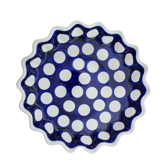 • Like the entire product range of Zakłady Ceramiczne "BOLESŁAWIEC," the plates are also hand-decorated using stamps and brushes, making each one unique, so there may be minimal differences in decoration between individual pieces within the same decorationD-26 decorationCobalt and cream background is always a perfect combination of colors, found on ceramics for decades. This decoration is simple, classic, although it cannot be said that it clearly refers to the tradition of Bolesławiec. Peas? Colic? Dots? Call it what you want, but be sure to check how the tea tastes in a cup with such a motif. All the decorations of the dishes, manufactured in Zakłady Ceramiczne "BOLESŁAWIEC", are made by hand painters using traditional methods - using stamps and brushes. After the stage of decorating and glazing, the dishes are subjected to a second firing at high temperature, thanks to which both the dish and the decoration gain resistance to damage and color change. Each hand-decorated item is one-of-a-kind, as minor variations in decoration are inevitable.
