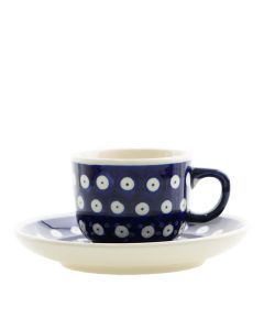 Tea bag holderD-42 "spots” decorationThis is one of the most classic and at the same time very popular decorations in Bolesławiec ceramics. You have cobalt circles with a white center and a cobalt dot transitioning into a cobalt cloud to choose from. The white circles are densely and randomly arranged. They appear organized, yet somewhat random. The colors used for decoration make it minimalist and elegant.