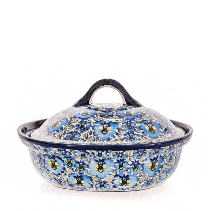 • Jak cały asortyment Zakładów Ceramicznych „BOLESŁAWIEC”, także brytfanny dekorowane są ręcznie przy użyciu stempli i pędzli, dzięki czemu każda jest jedyna w swoim rodzaju, a zatem mogą wystąpić minimalne różnice w zdobieniu pomiędzy poszczególnymi egzemplarzami w ramach jednej dekoracjiART-313Niezwykła Dekoracja Chabry to hołd dla naturalnej harmonii i urody, której często nie zauważamy w codziennym zabieganiu. Chabry, te delikatne i urocze kwiaty, są symbolem skromności i tajemnicy. W ich subtelnych kształtach i niebieskich odcieniach tkwi niezwykła siła estetyczna. Dekoracja Chabry, w swojej prostocie, przypomina nam, że piękno nie zawsze musi być wyraziste i krzykliwe.