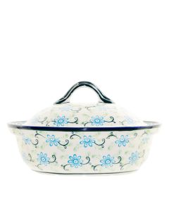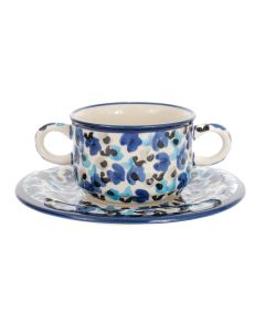 W Zakładach Ceramicznych “BOLESŁAWIEC” wysoka jakość idzie w parze z pięknem. Dekoracje o podwyższonym standardzie, które oferujemy, to finezyjne wzory wyróżniające się starannym wykończeniem i precyzyjnie wykonanymi detalami. Zachwycają unikalnym połączeniem stempla w kształcie tak zwanego pawiego oczka oraz kobaltowego kwiatka. Kobalt, będący dominującym kolorem we wzorach bolesławieckich, jest w dekoracjach często zestawiany z odcieniami zieleni i brązu, tworząc spójną i estetycznie dopracowaną kompozycję.