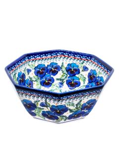 • Można używać w mikrofalówceART-277To jedna z unikatowych dekoracji, które charakteryzują się większą różnorodnością wzorów i kolorów niż tradycyjne dekoracje. W tym przypadku mamy do czynienia z jednym z najpiękniejszych polskich kwiatów, czyli bratkami. Zachowane w kolorach ciemnego niebieskiego z czarnymi środkami są eleganckie. W kontraście do prawdziwie malarskiego motywu kwiatowego są szkice składające się z abstrakcyjnych wzorów. Nietypowa dekoracja dla koneserów ceramiki Bolesławca.