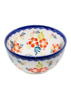 • Podobnie jak cała oferta produktów Zakładów Ceramicznych "BOLESŁAWIEC", filiżanki są również ręcznie dekorowane za pomocą stempli i pędzli, dzięki czemu każda filiżanka jest unikatowa, dlatego mogą występować minimalne różnice w dekoracji między poszczególnymi egzemplarzami w ramach tej samej dekoracjiA-1306AEgzotyczny, pomarańczowo-czerwony kwiat hibiskusa i soczyste, zielone liście na bolesławieckiej ceramice? Dlaczego nie? Oceńcie sami, jak ten motyw zdobniczy zaproponowany przez projektantkę Barbarę Morżkowską-Michalak prezentuje się na ceramicznych naczyniach. Naszym zdaniem całkiem nieźle! P.S. Jest też kobaltowy szlaczek - chyba coś dla Was tradycjonaliści!
