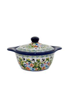 Ceramiczne naczynie do smalcu wykonane jest z wysokiej jakości gliny, co zapewnia jego wyjątkową trwałość i odporność na wysokie temperatury. Ceramika jest materiałem, który doskonale akumuluje ciepło, co jest kluczowe podczas procesu zapiekania smalcu. Naczynia ceramiczne nie reagują też z tłuszczami, a tym samym zapobiegają zmianom w smaku i zapachu przechowywanej zawartości. Każde naczynie do zapiekania smalcu z naszej oferty jest dekorowane ręcznie, co sprawia, że może służyć nie tylko jako praktyczny element, ale również jako piękny, rustykalny dodatek do domowej aranżacji.
