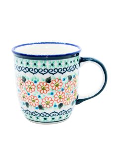 Kubek Beczułka średni (V0,3L)• Kubek „beczułka średni” o pojemności 0,30 litra • Kubek swoim kształtem nawiązuje do tradycyjnej śląskiej szolki • Dzięki masie, z której został wykonany i charakterystycznemu kształtowi kubek długo utrzymuje temperaturę gorących napojów • Ze względu na swój niewielki rozmiar kubek idealnie nadaje się dla najmłodszych domowników • Kubek można myć w zmywarce, używać w kuchenkach mikrofalowych oraz przechowywać w nim żywność w lodówce • Dzięki szkliwieniu i wypałowi w wysokiej temperaturze dekoracja kubka odporna jest na zniszczenie • Jak każde naczynie z Zakładów Ceramicznych „BOLESŁAWIEC”, także kubki dekorowane są ręcznie przy użyciu stempli i pędzli, co sprawia, że każdy jest jedyny w swoim rodzaju, a zatem możliwe są niewielkie różnice w zdobieniu pomiędzy poszczególnymi egzemplarzami w ramach jednej dekoracjiART-277To jedna z unikatowych dekoracji, które charakteryzują się większą różnorodnością wzorów i kolorów niż tradycyjne dekoracje. W tym przypadku mamy do czynienia z jednym z najpiękniejszych polskich kwiatów, czyli bratkami. Zachowane w kolorach ciemnego niebieskiego z czarnymi środkami są eleganckie. W kontraście do prawdziwie malarskiego motywu kwiatowego są szkice składające się z abstrakcyjnych wzorów. Nietypowa dekoracja dla koneserów ceramiki Bolesławca.