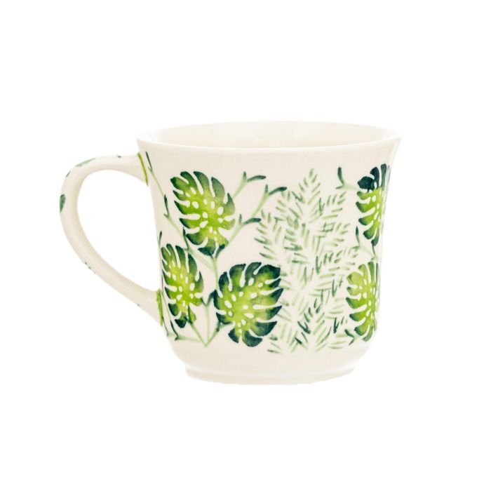 • Podobnie jak cała oferta produktów Zakładów Ceramicznych "BOLESŁAWIEC", kubki są także dekorowane ręcznie, przy użyciu stempli i pędzli, co sprawia, że każdy z nich jest wyjątkowy, dlatego też możliwe są niewielkie różnice w dekoracji między poszczególnymi egzemplarzami w ramach tej samej dekoracji.D-1308Motyw liści monstery od kilku sezonów jest jednym z najpopularniejszych motywów dekoracyjnych we wnętrzach. Pojawienie się monstery na ceramice Bolesławca jest znakiem, że można iść z duchem czasu i skutecznie łączyć tradycję z nowoczesnością. Dekoracja składa się z liści monstery w soczystej zieleni oraz liści innych roślin w różnych odcieniach tego koloru. Wszystko to na kremowym tle. Jest to bezpretensjonalne i modne.