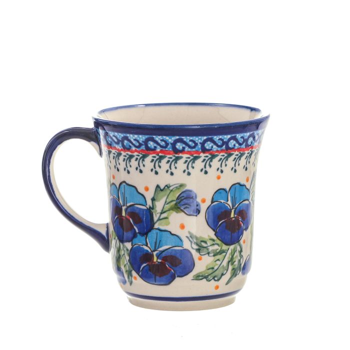 Kubek Krokus mały (V0,3L)• Ceramiczny kubek "krokus" o pojemności 0,3 litra • Mały kubek idealny na poranną kawę • Może być również używany przez młodszych członków rodziny, nie tylko do gorących lub zimnych napojów, ale także do deserów, takich jak kremówka, budyń czy galaretka • Łatwo można go dopasować do talerza śniadaniowego, miski na płatki śniadaniowe i innych naczyń kuchennych w tej samej dekoracji • Kubek nadaje się do mycia w zmywarce, jest bezpieczny do użycia w kuchence mikrofalowej i można w nim przechowywać jedzenie w lodówce • Dzięki szkliwieniu i wypałowi w wysokiej temperaturze, dekoracja kubka jest odporna na uszkodzenia • Podobnie jak cała oferta produktów Zakładów Ceramicznych "BOLESŁAWIEC", kubki są także dekorowane ręcznie, przy użyciu stempli i pędzli, dzięki czemu każdy z nich jest unikalny, a więc mogą wystąpić minimalne różnice w dekoracji między poszczególnymi egzemplarzami w ramach tej samej dekoracjiART-277To jedna z unikatowych dekoracji, które charakteryzują się większą różnorodnością wzorów i kolorów niż tradycyjne dekoracje. W tym przypadku mamy do czynienia z jednym z najpiękniejszych polskich kwiatów, czyli bratkami. Zachowane w kolorach ciemnego niebieskiego z czarnymi środkami są eleganckie. W kontraście do prawdziwie malarskiego motywu kwiatowego są szkice składające się z abstrakcyjnych wzorów. Nietypowa dekoracja dla koneserów ceramiki Bolesławca.