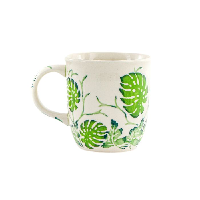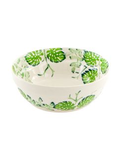 D-1308Motyw liści monstery od kilku sezonów jest jednym z najpopularniejszych motywów dekoracyjnych we wnętrzach. Pojawienie się monstery na ceramice Bolesławca jest znakiem, że można iść z duchem czasu i skutecznie łączyć tradycję z nowoczesnością. Dekoracja składa się z liści monstery w soczystej zieleni oraz liści innych roślin w różnych odcieniach tego koloru. Wszystko to na kremowym tle. Jest to bezpretensjonalne i modne.