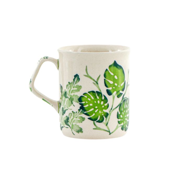 • W rezultacie, mogą wystąpić niewielkie różnice w dekoracji między poszczególnymi egzemplarzami tego samego wzoru.D-1308Motyw liści monstery od kilku sezonów jest jednym z najpopularniejszych motywów dekoracyjnych we wnętrzach. Pojawienie się monstery na ceramice Bolesławca jest znakiem, że można iść z duchem czasu i skutecznie łączyć tradycję z nowoczesnością. Dekoracja składa się z liści monstery w soczystej zieleni oraz liści innych roślin w różnych odcieniach tego koloru. Wszystko to na kremowym tle. Jest to bezpretensjonalne i modne.