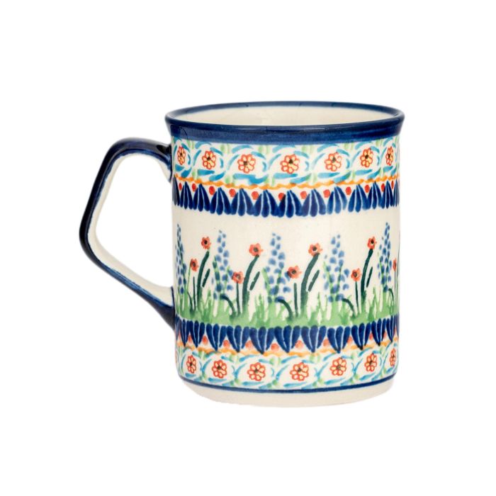 • Jak każdy element z Zakładów Ceramicznych "Bolesławiec", kubki są ręcznie dekorowane przy użyciu stempli i pędzli, co czyni każdy z nich unikalnym