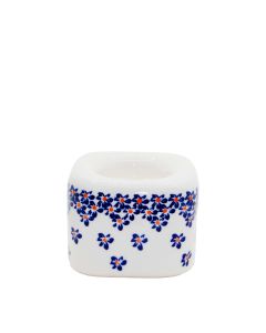 Miodownik (V0,6L) A-882APiękny, subtelny wzór kwiatowy w kolorach kobaltu i pomarańczy. Maleńkie kwiaty na ceramice łączą się w grupy, a potem pojedyncze kwiaty odrywają się od kwiatowego welonu, tworząc ciekawy efekt na powierzchni naczynia. Ta dekoracja dedykowana jest miłośnikom bardziej nowoczesnych i prostszych wzorów z Bolesławca.