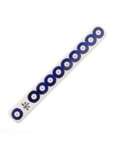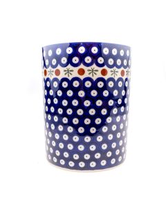 D-41To jedna z klasycznych dekoracji ceramicznych z Bolesławca, na której oczy pawie kiedyś były głównym motywem dekoracyjnym. Mamy tu niebieskie koła z białymi środkami z niebieskimi kropkami pośrodku, których brzegi łączą się w niebieski obłok. Dodażka zieleni i brązu - kolejne tradycyjne kolory dekoracji - sprawiają, że dekoracja staje się optycznie jaśniejsza i bardziej interesująca.