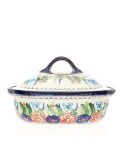 • Podobnie jak wszystkie produkty ceramiczne z Zakładów Ceramicznych "BOLESŁAWIEC", tace są ręcznie dekorowane za pomocą stempli i pędzli, dzięki czemu każda taca jest unikatowa, dlatego mogą występować minimalne różnice w dekoracji między poszczególnymi egzemplarzami w ramach tej samej dekoracji