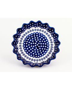 Miska Fiołek mała (V0,4L)A-166ATa dekoracja jest królową wśród dekoracji - podziwianą i kochaną przez klientów. Pomysł na nią oparty jest na klasycznych dekoracjach Bolesławca, gdzie mamy trzy kolory: kobalt, brąz i zielony. Znajdują się tu również kobaltowe, gęsto rozmieszczone koła z oczami pawia, przechodzące w kobaltową chmurę. Są one oddzielone girlandą kwiatów o nieco poszarpanych płatkach, które trochę przypominają goździki brodate z ogrodów naszych babć i mam.