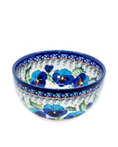 • Podobnie jak cała oferta produktów Zakładów Ceramicznych "BOLESŁAWIEC", kubki są także dekorowane ręcznie, przy użyciu stempli i pędzli, dzięki czemu każdy z nich jest unikalny, a więc mogą wystąpić minimalne różnice w dekoracji między poszczególnymi egzemplarzami w ramach tej samej dekoracjiART-277To jedna z unikatowych dekoracji, które charakteryzują się większą różnorodnością wzorów i kolorów niż tradycyjne dekoracje. W tym przypadku mamy do czynienia z jednym z najpiękniejszych polskich kwiatów, czyli bratkami. Zachowane w kolorach ciemnego niebieskiego z czarnymi środkami są eleganckie. W kontraście do prawdziwie malarskiego motywu kwiatowego są szkice składające się z abstrakcyjnych wzorów. Nietypowa dekoracja dla koneserów ceramiki Bolesławca.