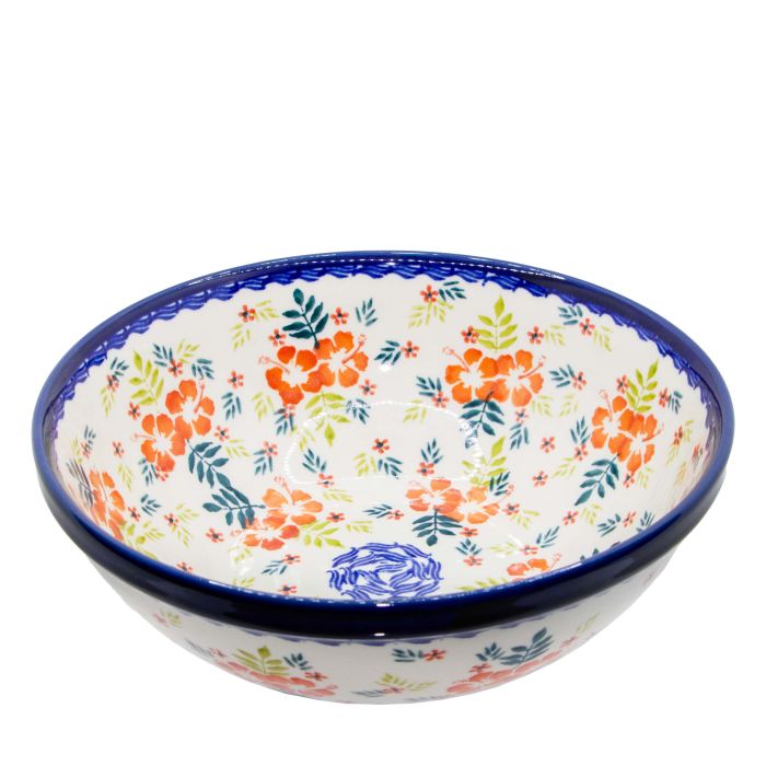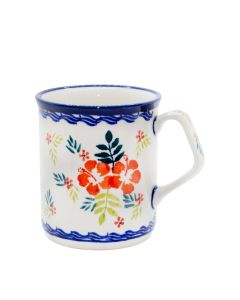 A-1306AEgzotyczny, pomarańczowo-czerwony kwiat hibiskusa i soczyste, zielone liście na bolesławieckiej ceramice? Dlaczego nie? Oceńcie sami, jak ten motyw zdobniczy zaproponowany przez projektantkę Barbarę Morżkowską-Michalak prezentuje się na ceramicznych naczyniach. Naszym zdaniem całkiem nieźle! P.S. Jest też kobaltowy szlaczek - chyba coś dla Was tradycjonaliści!