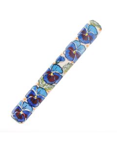 Numer domu 7 ART-277To jedna z unikatowych dekoracji, które charakteryzują się większą różnorodnością wzorów i kolorów niż tradycyjne dekoracje. W tym przypadku mamy do czynienia z jednym z najpiękniejszych polskich kwiatów, czyli bratkami. Zachowane w kolorach ciemnego niebieskiego z czarnymi środkami są eleganckie. W kontraście do prawdziwie malarskiego motywu kwiatowego są szkice składające się z abstrakcyjnych wzorów. Nietypowa dekoracja dla koneserów ceramiki Bolesławca.